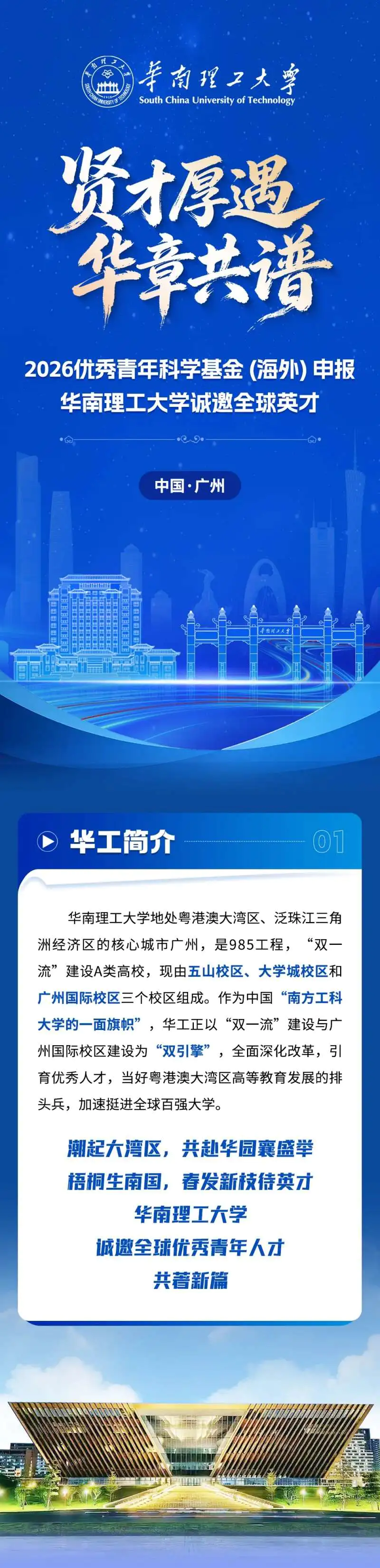 贤才厚遇,华章共谱 | 华南理工大学诚邀全球英才依托申报2026年海外优青!